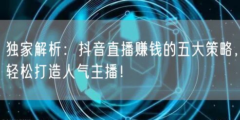 独家解析:抖音直播赚钱的五大策略,轻松打造人气主播!