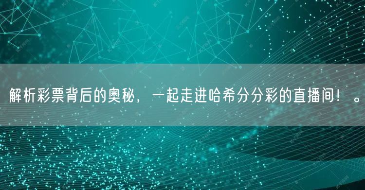 你是否曾经对彩票背后的奥秘充满好奇?是否想过那些数字背后隐藏着什么秘密?今天,让我们一起走进哈希分分彩的直播间,揭开彩票背后的神秘面纱。
