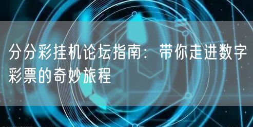 本篇指南带你走进分分彩挂机论坛,探索数字彩票的奥秘,提供彩票攻略和论坛指南,助你轻松掌握彩票技巧,享受彩票带来的乐趣。