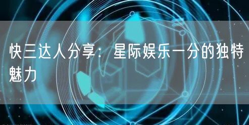 欢迎来到星际娱乐一分的世界,这里是一个充满无限惊喜和乐趣的游戏舞台。作为快三达人,今天我将与大家分享星际娱乐一分的独特魅力。