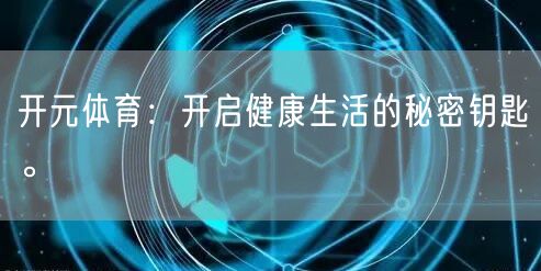 总之,开元体育不仅提供了运动健身的平台,更是引领了一种健康的生活方式。它像一把秘密钥匙,帮助人们开启健康的生活。让我们一起跟随开元体育,开启健康生活的旅程吧!